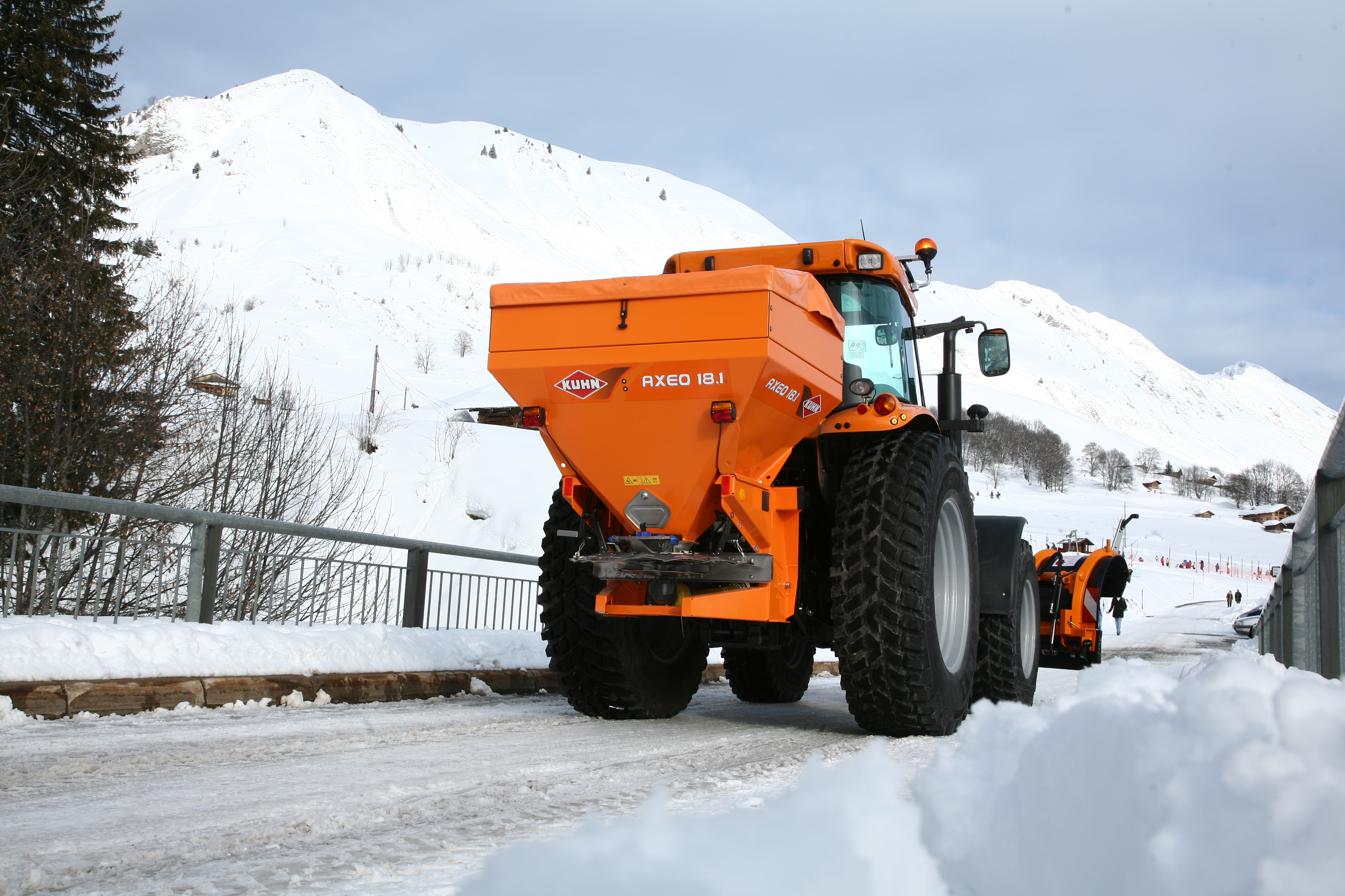 L'Axeo est capable d'épandre du sel, du sable et des gravillons, mais également de l'engrais sur les parcs et les espaces verts. Il est possible d'avoir des dosages allant de quelques grammes à plusieurs kilogrammes.